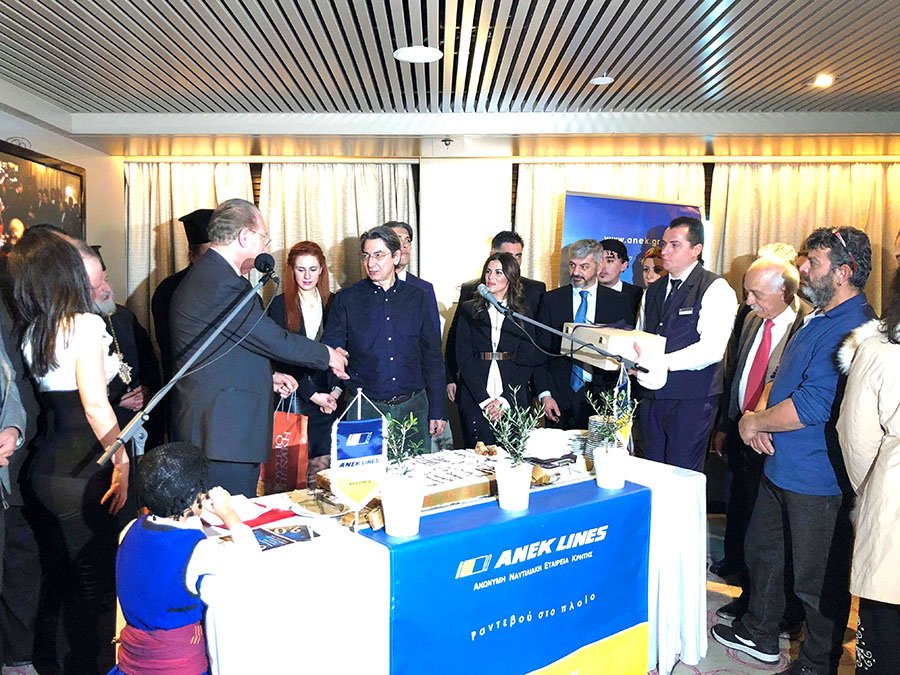 Από την πλευρά της ΑΝΕΚ LINES, ο Πρόεδρος, κ. Γιώργος Κατσανεβάκης, ευχήθηκε σε όλους μια καλή και γεμάτη αισιοδοξία νέα χρόνια τονίζοντας ότι: «Για την ΑΝΕΚ LINES αποτελεί ιδιαίτερη τιμή, να υποδέχεται φίλους και συμπατριώτες. Με όσα μέσα διαθέτουμε, σας διαβεβαιώ εκ μέρους όλων μας, ότι θα συνεχίσουμε να στηρίζουμε κάθε ενέργεια που μας φέρνει πιο κοντά, κάθε πρωτοβουλία που αναδεικνύει όλα εκείνα που μας ενώνουν: την παράδοση, τις αρχές μας, την κληρονομιά μας, το νησί μας»