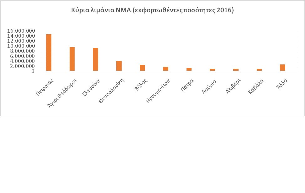 Άλλοι σημαντικοί λιμένες για τη ΝΜΑ αποστάσεων είναι των Αγίων Θεοδώρων, των Μεγάρων, της Θεσσαλονίκης, της Ελευσίνας και του Βόλου. Οι Άγιοι Θεόδωροι, τα Μέγαρα και η Ελευσίνα βρίσκονται σε μικρή απόσταση από το λιμάνι του Πειραιά, δημιουργώντας ένα cluster λιμένων ΝΜΑ γύρω από την πρωτεύουσα εντείνοντας την συγκέντρωση των ροών σε επίπεδο περιφέρειας.