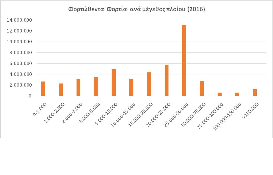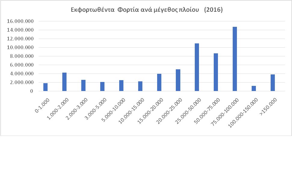 Όσον αφορά το μέγεθος των πλοίων ΝΜΑ που προσεγγίζουν τα ελληνικά λιμάνια, παρατηρείται ότι ο σύγχρονος στόλος της ΝΜΑ αυξάνεται σταδιακά από άποψη χωρητικότητας. Η αντίληψη ότι η ΝΜΑ αποτελείται από μικρά πλοία έχει αλλάξει. Βάσει των δεδομένων, μπορεί να υποστηριχθεί ένα τυπικό πλοίου ΝΜΑ έχει χωρητικότητα μεταξύ 25.000 -50.000 τόνων. Τα μεγαλύτερα πλοία της κατηγορίας είναι 50.000 – 75.000 τόνων και πάνω είναι πιο πιθανό να χρησιμοποιούνται ως «τροφοδοτικά πλοία»- feeder liners.