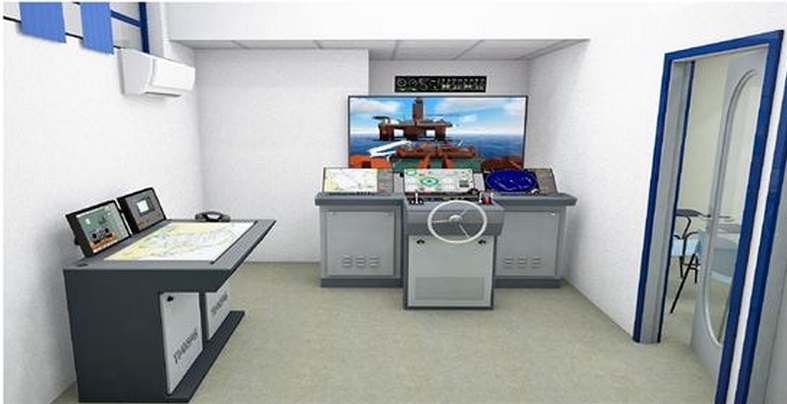 Γ) Έναν Προσομοιωτή χειρισμού υγρού φορτίου αποτελούμενο από έξι σταθμούς εργασίας άσκησης σπουδαστών και μία θέση εκπαιδευτή.