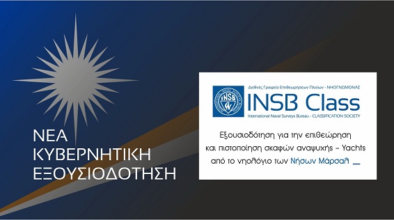 Μέσα στις προσπάθειες για ανάπτυξη του INSB Class στον χώρο του yachting, πιστεύουμε ότι η αποκτηθείσα αναγνώριση-εξουσιοδότηση από το νηολόγιο των Νήσων Μάρσαλ ενισχύει τις συλλογική μας προσπάθεια για την σταδιακή τοποθέτηση του INSB Class ανάμεσα στις πρώτες επιλογές ως πάροχο υπηρεσιών κατάταξης και πιστοποίησης σκαφών αναψυχής».