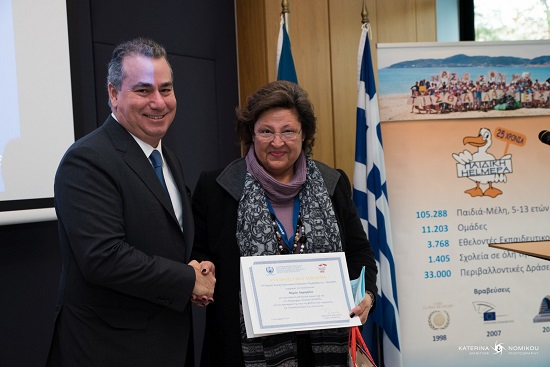 Ξεχωριστή στιγμή ήταν η συμβολική βράβευση δύο εθελοντών Εκπαιδευτικών με τη μεγαλύτερη συνεχόμενη συμμετοχή στο Πρόγραμμα, του κ. Ιωάννη Διαμαντάρα από το Δημοτικό Σχολείο Αλίντων Λέρου και της κας Μαρίας Λαμπρίδου από το 2ο Δημοτικό Σχολείο Νέας Σμύρνης, για την προσφορά τους στην περιβαλλοντική ενημέρωση και ευαισθητοποίηση της νέας γενιάς.