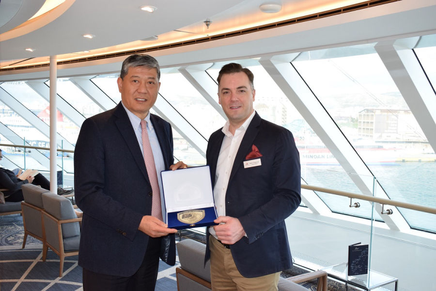 Ένα ακόμη νεότευκτο (2019) κρουαζιερόπλοιο της VIKING OCEAN CRUISES, το έκτο στη σειρά, υποδέχθηκαν ο Αναπληρωτής Διευθύνοντος Συμβούλου Capt. Weng Lin και στελέχη της ΟΛΠ Α.Ε. και επέδωσαν τιμητική πλακέτα στον Cruise Director Mark Andrew Brignone και βιβλία για τη βιβλιοθήκη του πλοίου.