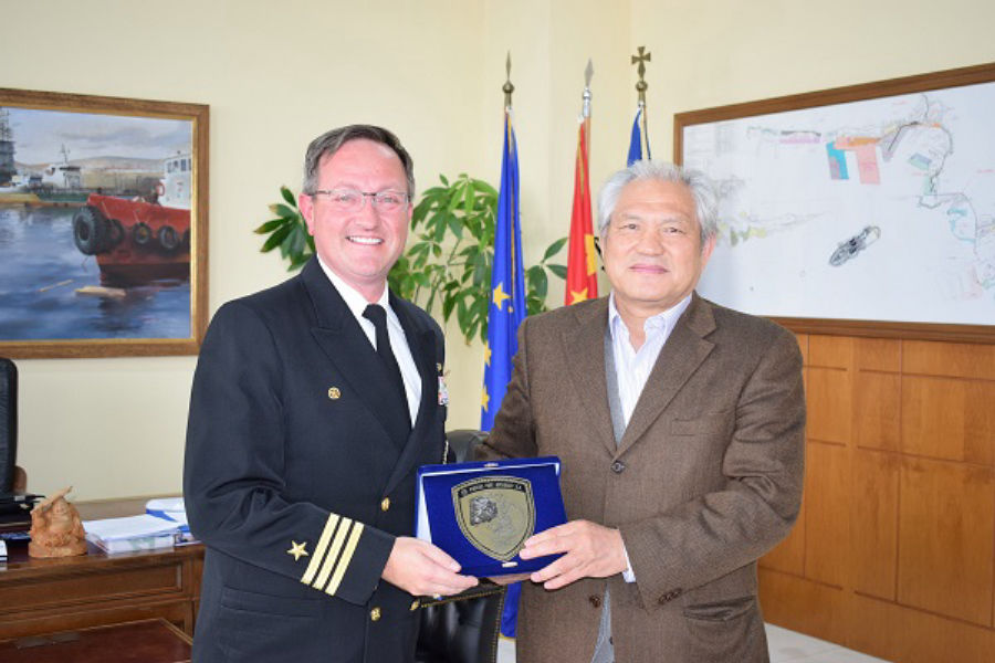 Ο Δ/νων Σύμβουλος Captain Fu Chengqiu και στελέχη της Διοίκησης της ΟΛΠ Α.Ε. αφού τους καλωσόρισαν, τους επέδωσαν αναμνηστική πλακέτα και κατά την ανταλλαγή δώρων, τους ευχήθηκαν καλή παραμονή.