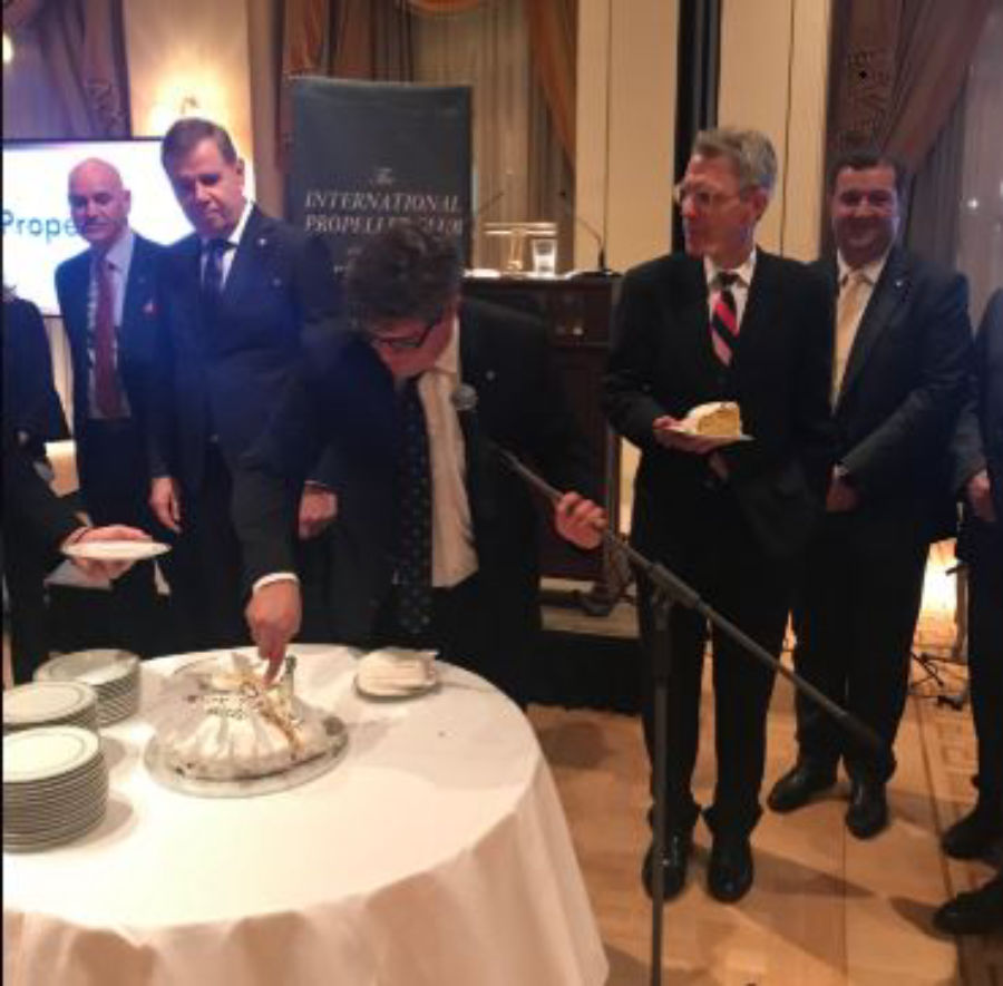 Από την πλευρά του ο Πρόεδρος του Propeller Club, Γιώργος Ξηραδάκης, στον σύντομο καθιερωμένο χαιρετισμό του αναφέρθηκε στο σημαντικό έργο του Propeller Club που έχει δύο κύριους άξονες. Τον άξονα της προσφοράς προς την κοινωνία που αντικατοπτρίζεται με τις επιβραβεύσεις των αρίστων οι οποίοι αποτελούν πρότυπα για τους υπολοίπους, αλλά και των οικονομικά ασθενέστερων, και τον άξονα της "δυνατότητας των μελών του Propeller Club να έρχονται σε επαφή με πραγματικούς φίλους σε όλη την οικουμένη, φίλους που ασπάζονται και σέβονται τα αληθινά ιδεώδη της αλληλοεκτίμησης, της τιμιότητας και της ισονομίας, χαρακτηριστικά που είναι κοινά των δύο πολιτισμών, τόσο του Αμερικανικού όσο και του Ελληνικού.