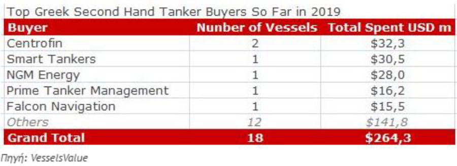 Η εταιρεία Smart Tankers έχει εξαγοράσει ένα τάνκερ αξίας 30,5 εκατ. δολαρίων και ακολουθεί η NGM Energy, συμφερόντων της οικογένειας Μουνδρέα, που απέκτησε ένα δεξαμενόπλοιο στην τιμή των 28 εκατ. δολαρίων.