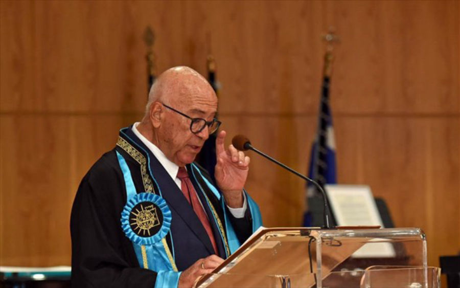 Ο Χιώτης στην καταγωγή, 83χρονος καπετάνιος, με ιδιαίτερη συγκίνηση περιεβλήθη τα διάσημα του Τμήματος και δέχθηκε δώρα και επαίνους από τον πρύτανη του Πανεπιστημίου Μακεδονίας, καθηγητή Στυλιανό Κατρανίδη, τον κοσμήτορα της Σχολής Κοινωνικών, Ανθρωπιστικών Επιστημών και Τεχνών, καθηγητή Ηλία Κουσκουβέλη, και τον πρόεδρο του Τμήματος Διεθνών και Ευρωπαϊκών Σπουδών, καθηγητή Δημήτριο Σκιαδά.