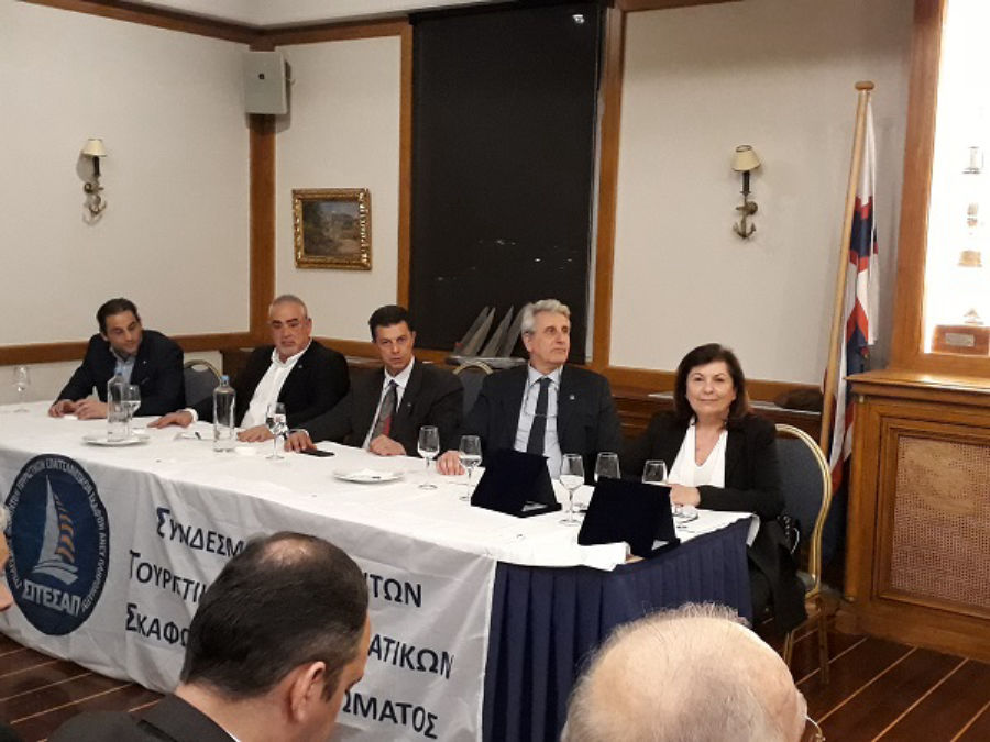 Ο Γενικός Γραμματέας Τουριστικής Πολιτικής και Ανάπτυξης κ. Γιώργος Τζιάλλας, που εκπροσώπησε την Υπουργό Τουρισμού κα Έλενα Κουντουρά, περιέγραψε την σημασία που δίνει το υπουργείο στον θαλάσσιο Τουρισμό. Η είδηση ήταν ότι μετά την πρόσφατη επίσκεψη του στο Ναυτικό Σαλόνι (ΒΟΟΤ) στο Dusseldorf Γερμανίας, όπου είχε την ευκαιρία να συναντήσει και να συζητήσει με την Πρόεδρο του Σ.Ι.Τ.Ε.Σ.Α.Π. και αρκετά μέλη τα θέματα του κλάδου, αποφασίστηκε να συμμετάσχει ο ΕΟΤ στην ΒΟΟΤ του 2020 με μεγάλο περίπτερο, για να προβληθεί ιδιαίτερα η δραστηριότητα του επαγγελματικού τουριστικού σκάφους, και η Ελλάδα ως θαλάσσιος προορισμός.