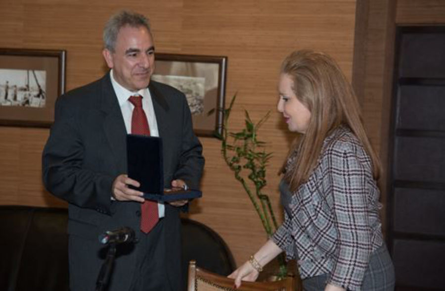 The President of Piraeus Marine Club Ms. Irene S. Daifas rewards the speaker Dr. George Pagoulatos